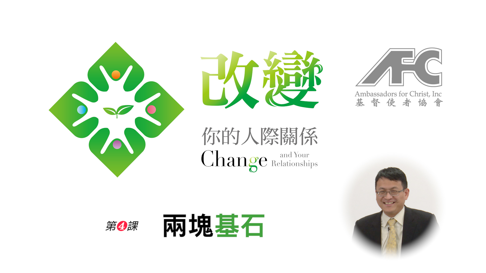 来到改变你的人际关系第四课,主题叫两个基石,就是我们生命要在人际关系中持续的改变,有两个很坚定的原则,必须经常在我们的心里面不断地工作着。第一个叫身份的原则,第二个叫敬拜的原则。